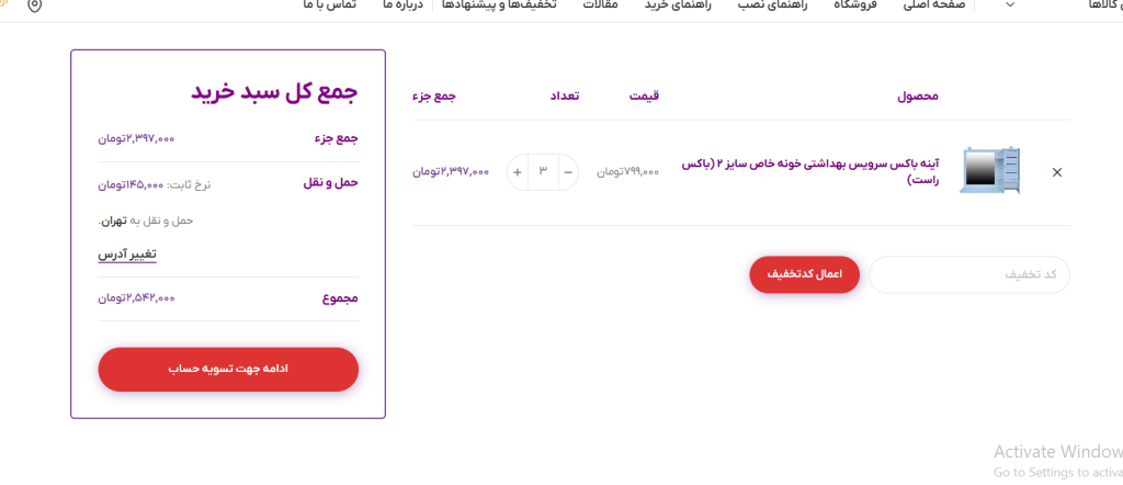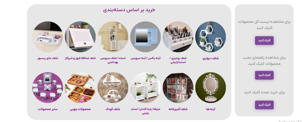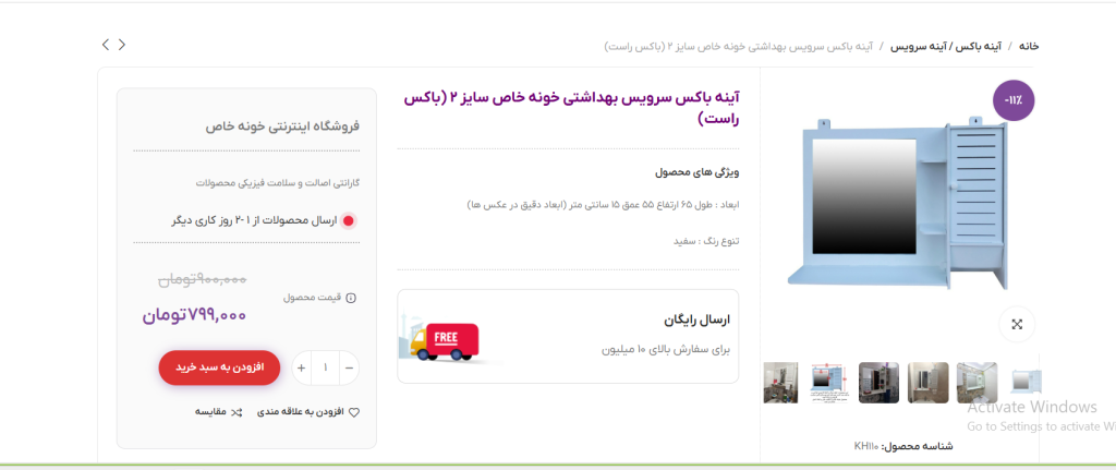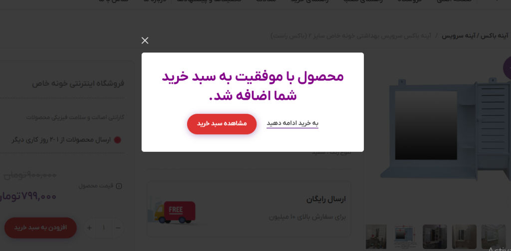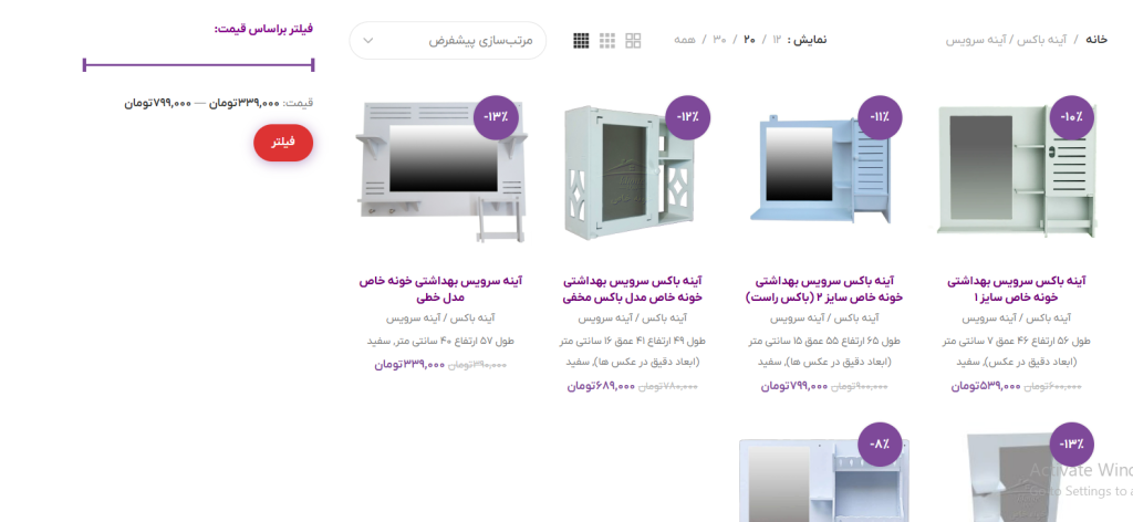 بر فرض مثال این دسته محصولات آینه باکس ها و آینه های سرویس بهداشتی را نشان می دهد. در این دسته محصول مورد نظر و رنگ انتخابی (در صورت داشتن تنوع رنگ) را انتخاب کنید.