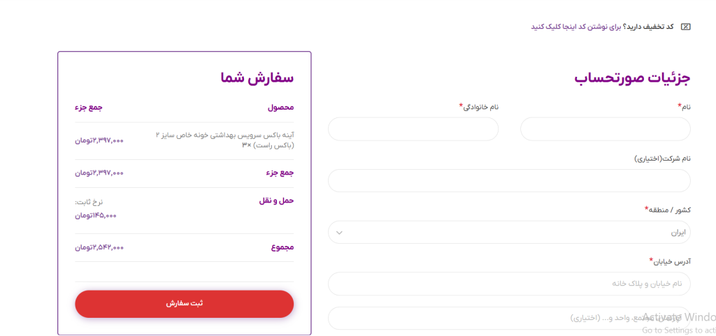 جزیات صورت حساب اطلاعات خواسته شده با دقت پر کنید. سپس دکمه ثبت سفارش کلیک کنید و پرداخت امن را انجام دهید.