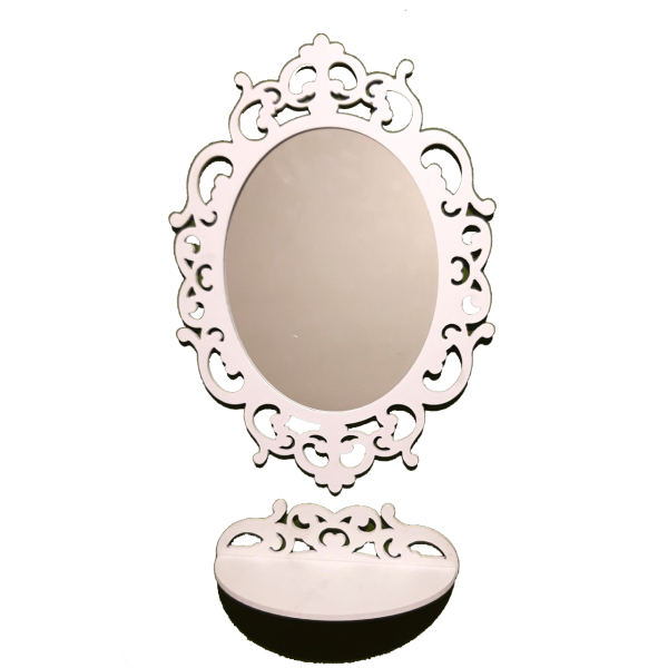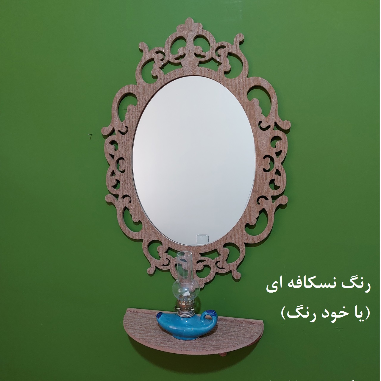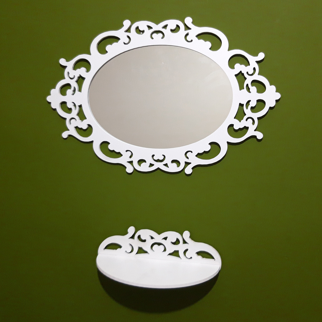 ست آینه و شلف خونه خاص در مدل بیضی با طرح تاج دار با طراحی خونه خاص تولید و به بازار عرضه گردیده است.