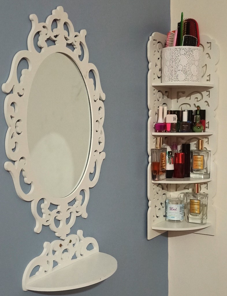 همچنین طاقچه (شلف) دیواری همراه با آیینه به شما در نگهداری انواع لوازم آرایشی، لوازم دکوری، لوازم شخصی بهداشتی و … کمک می کند.