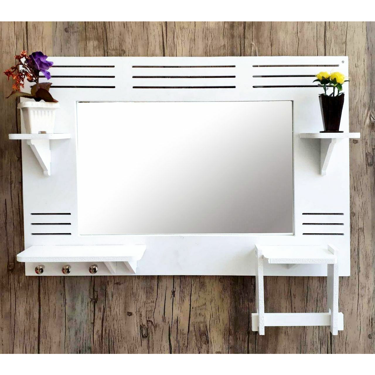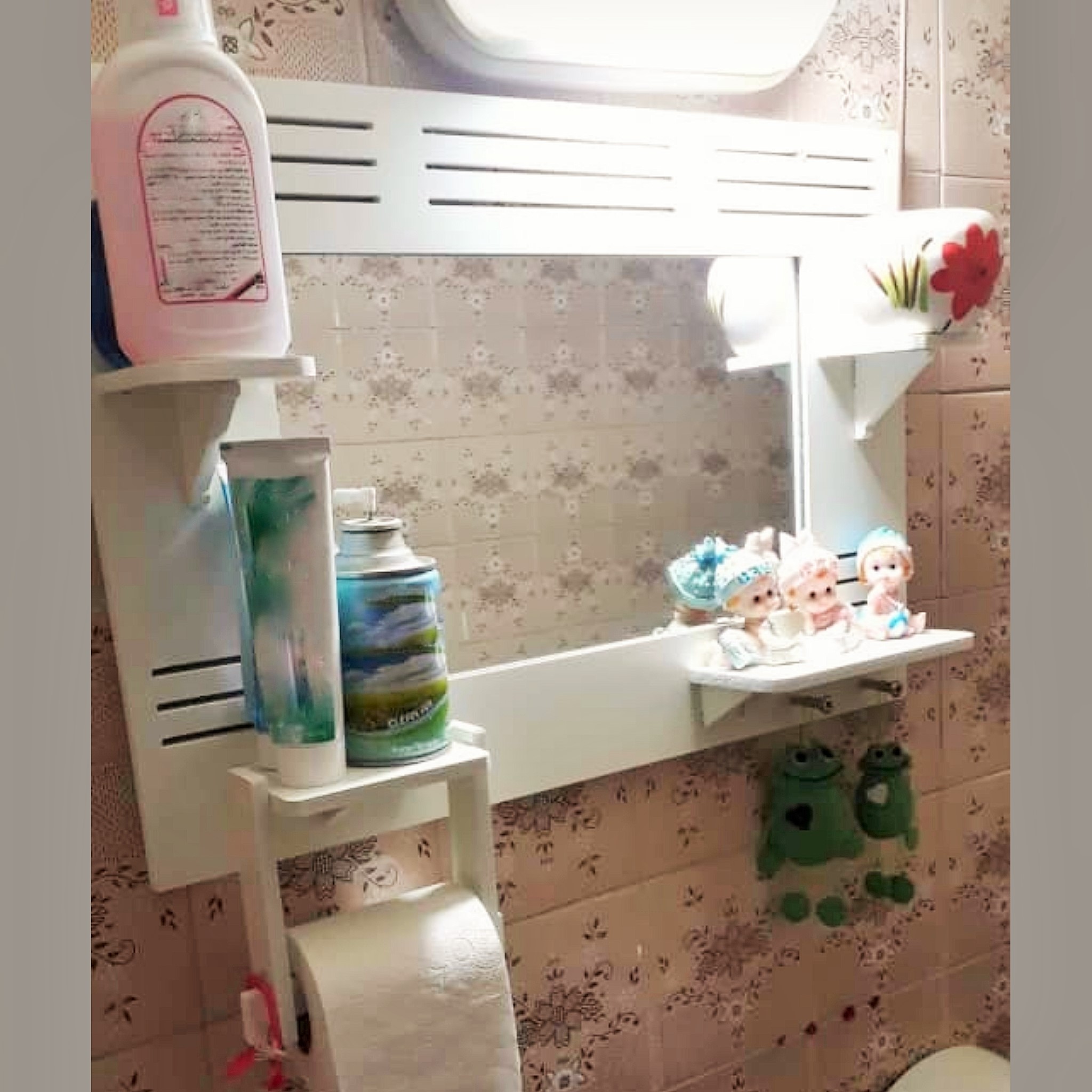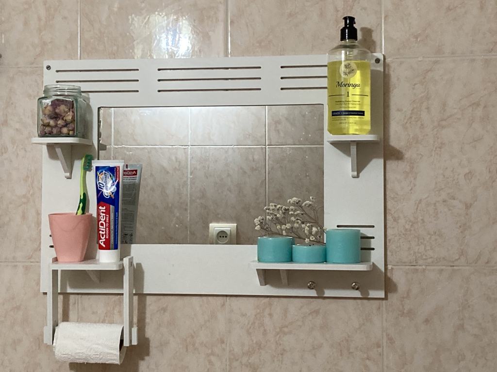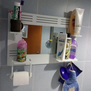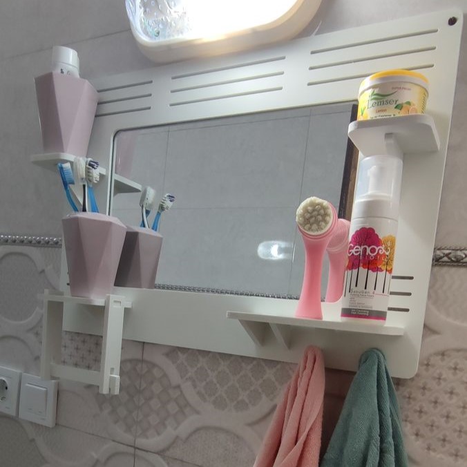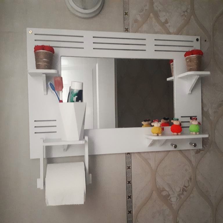 این محصول دارای جای دستمال کاغذی رولی یا حوله، دو عدد آویز استیل، چهار عدد طاقچه مناسب جای دکوری، گلدان، لیوان، جاصابون و … می باشد و طراحی کامل و در عین حال ساده و شیک دارد که می تواند جلوه زیبایی به سرویس بهداشتی بدهد.
