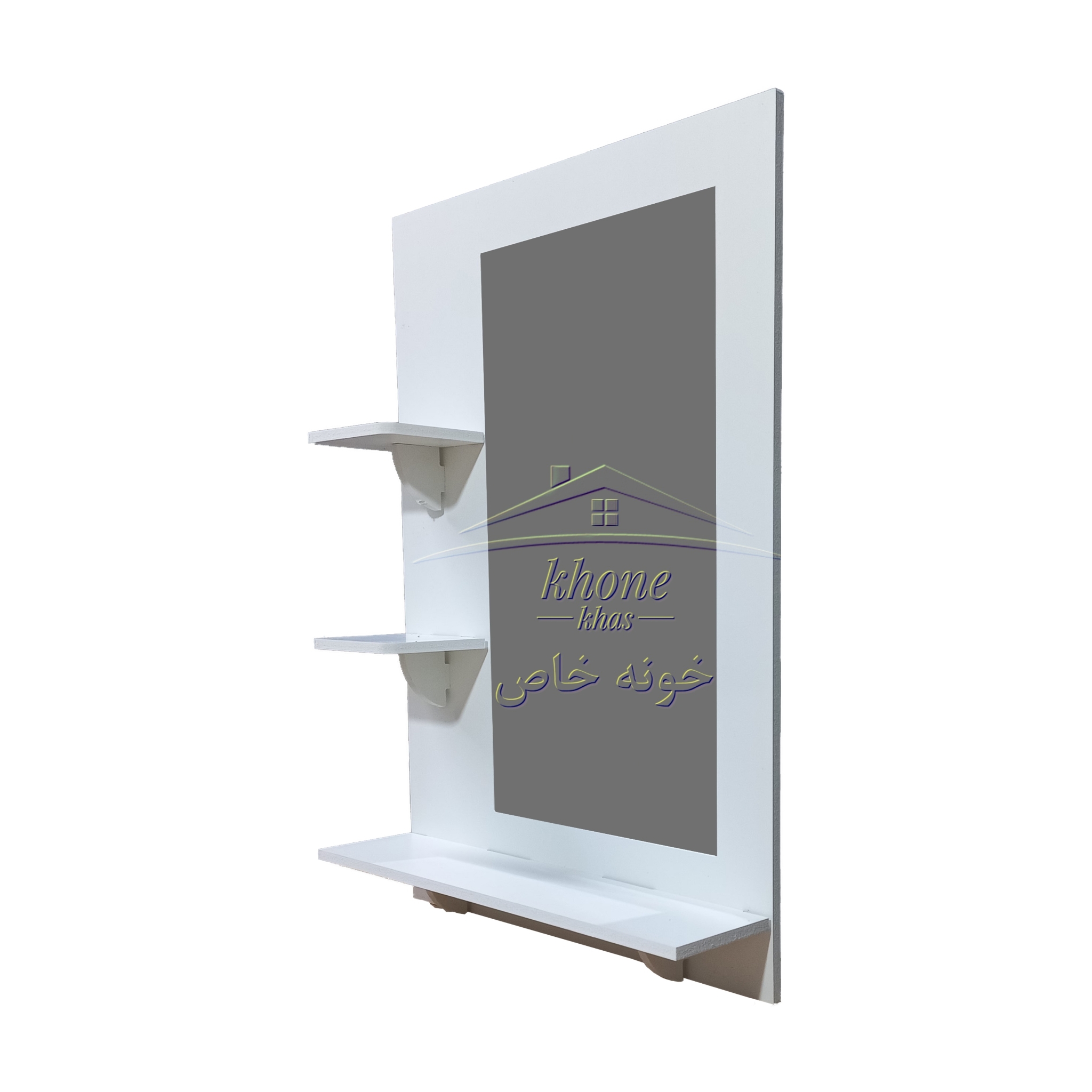 آینه سرویس بهداشتی مدل کلاسیک محصول ایرانی با طراحی و تولید خونه خاص بوده که از ورق درجه یک پی وی سی تهیه شده و مناسب سرویس بهداشتی، اتاق خواب، آرایشگاهها و … می باشد این محصول دارای یک عدد طاقچه بزرگ و دو عدد طاقچه کوچک مناسب جای دکوری، گلدان، لیوان، جاصابون و … می باشد و طراحی کامل و در عین حال ساده و شیک دارد که می تواند جلوه زیبایی به سرویس بهداشتی بدهد.