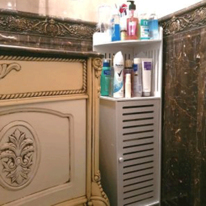 استند کنجی سرویس بهداشتی 90 سانتی محصول ایرانی با طراحی و تولید خونه خاص بوده که از ورق درجه یک پی وی سی تهیه شده و مناسب سرویس بهداشتی، اتاق خواب و … می باشد.