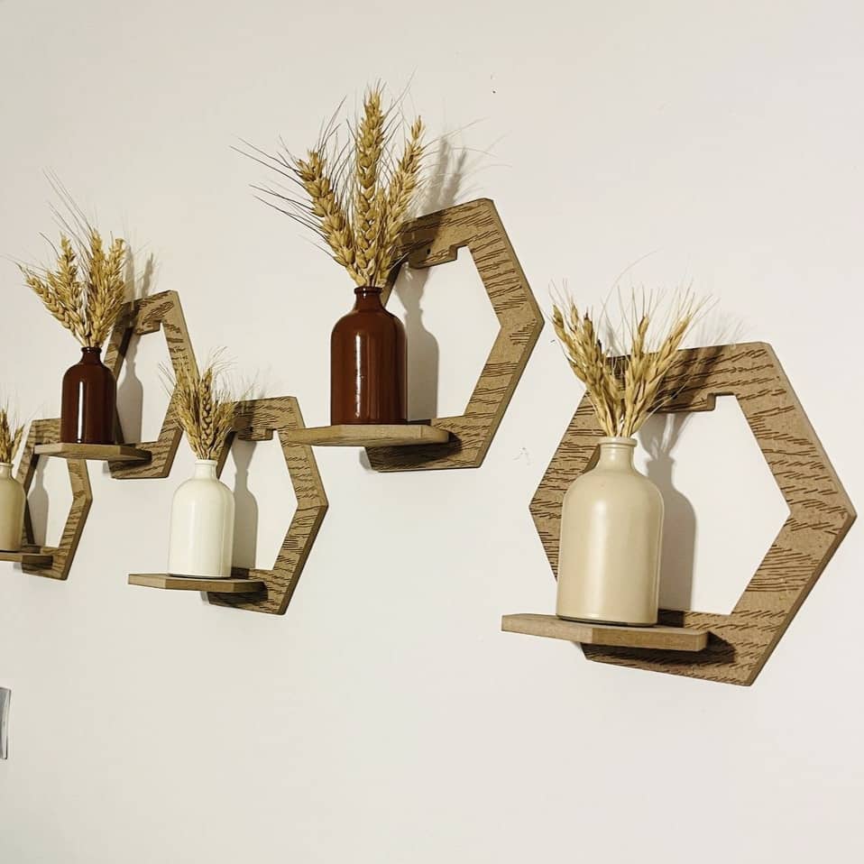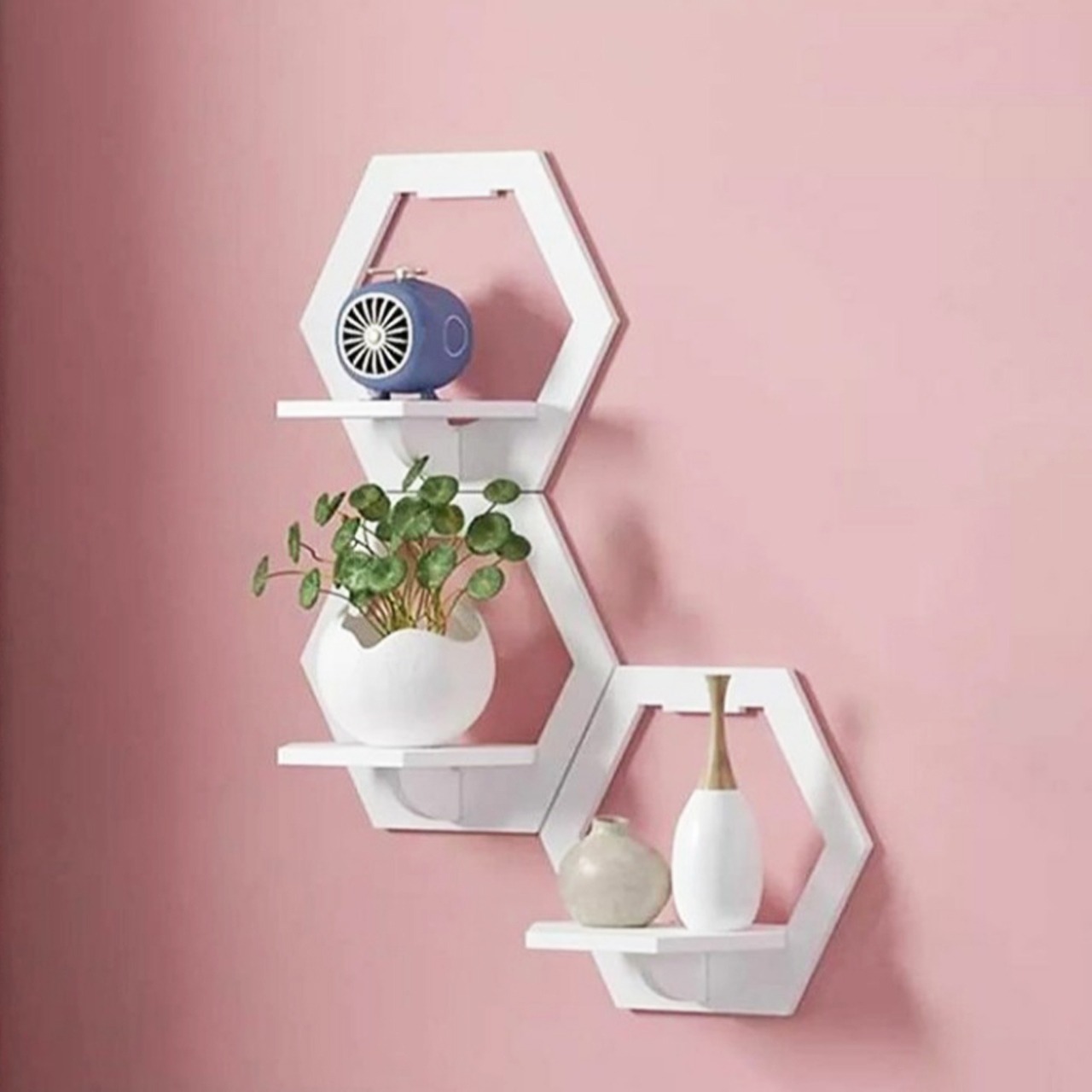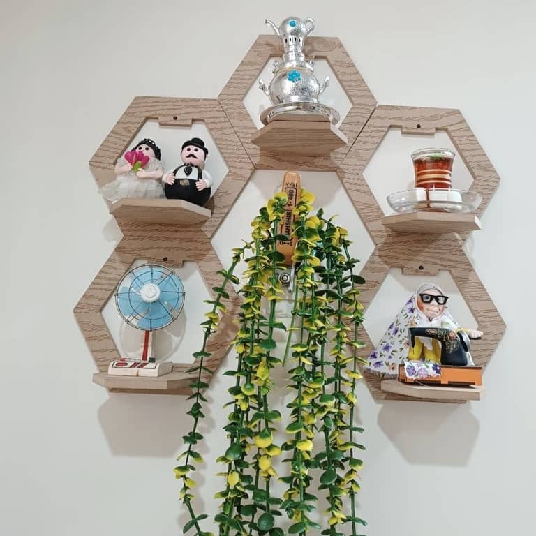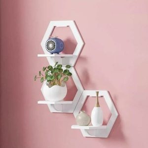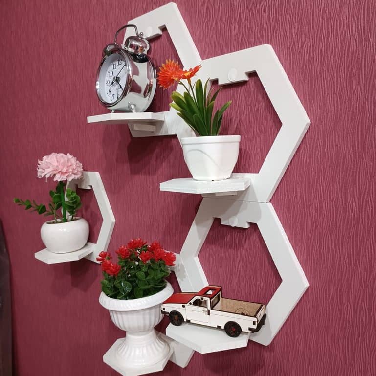 شلف دیواری شش ضلعی محصول ایرانی خونه خاص بوده که از جنس پی وی سی درجه یک تولید شده است. این محصول با ظاهری ساده نمایی هندسی بسبار زیبایی دارد.