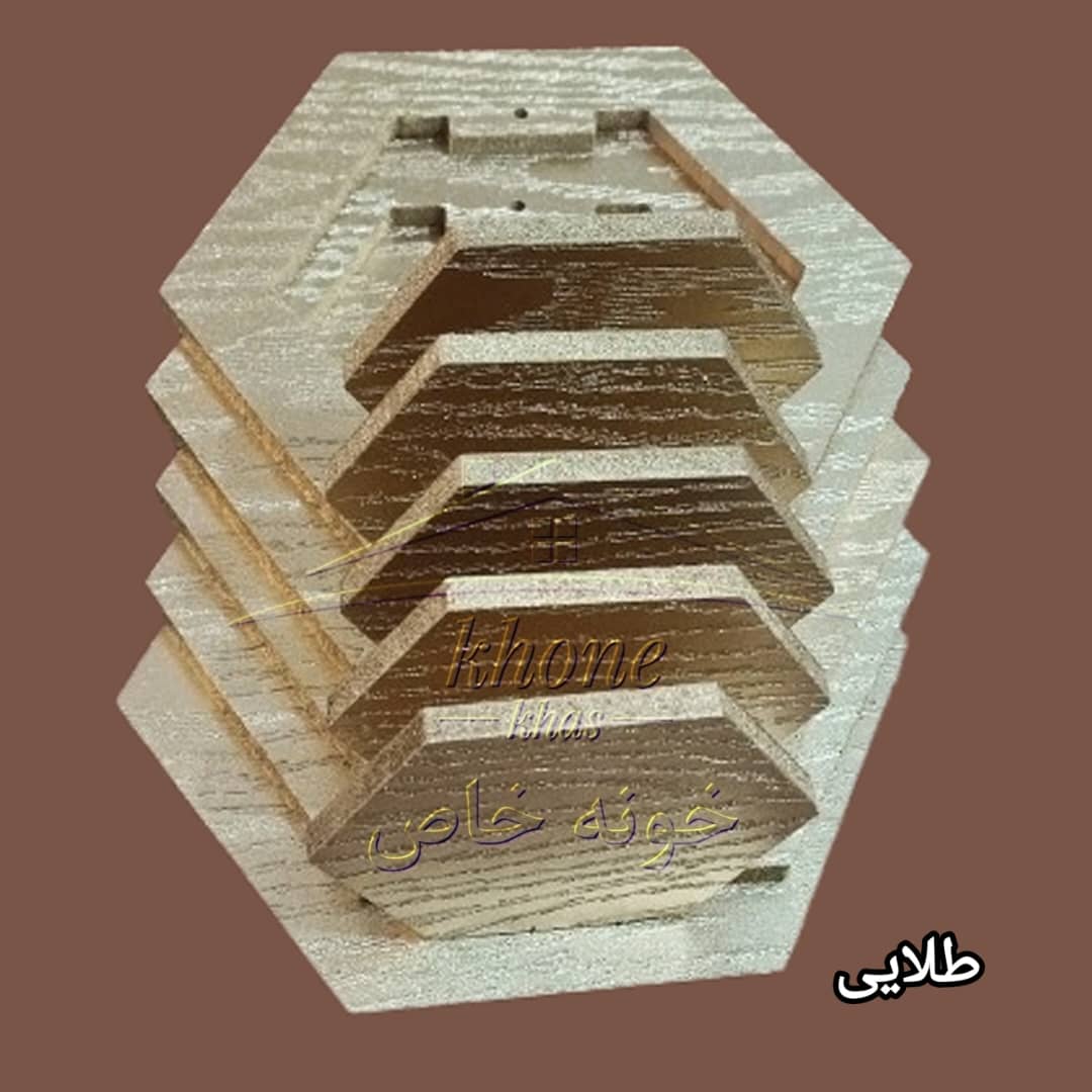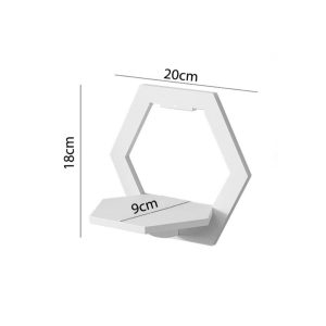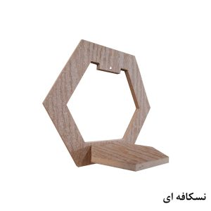 طراحی ظاهری شلف یک 6 ضلعی زیبا می باشد که بر روی قسمت پایینی خود یک کفی جهت قرار دادن لوازم تزیینی کوچک دارد .