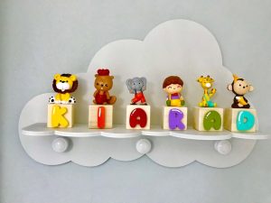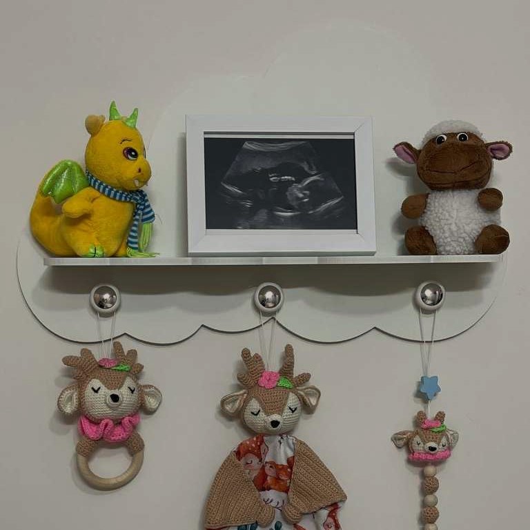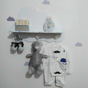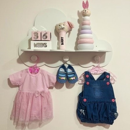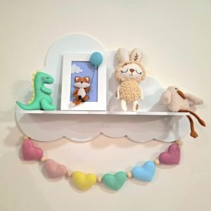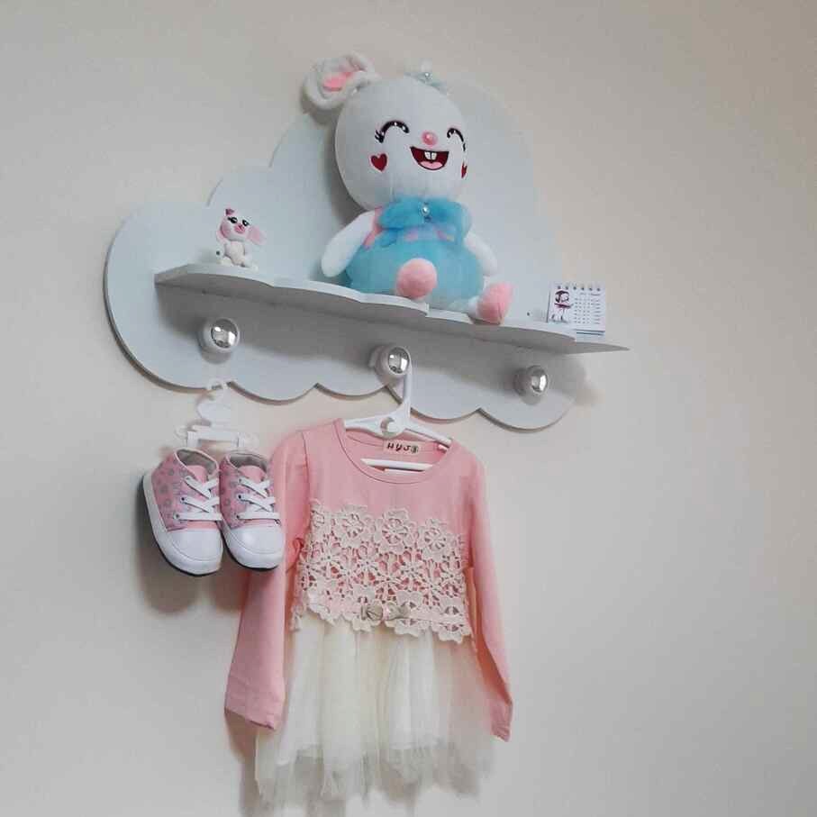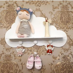 این شلف زیبا مناسب اتاق کودک، مهد کودک ها و … می باشد و دارای سه آویز سفید رنگ می باشد.